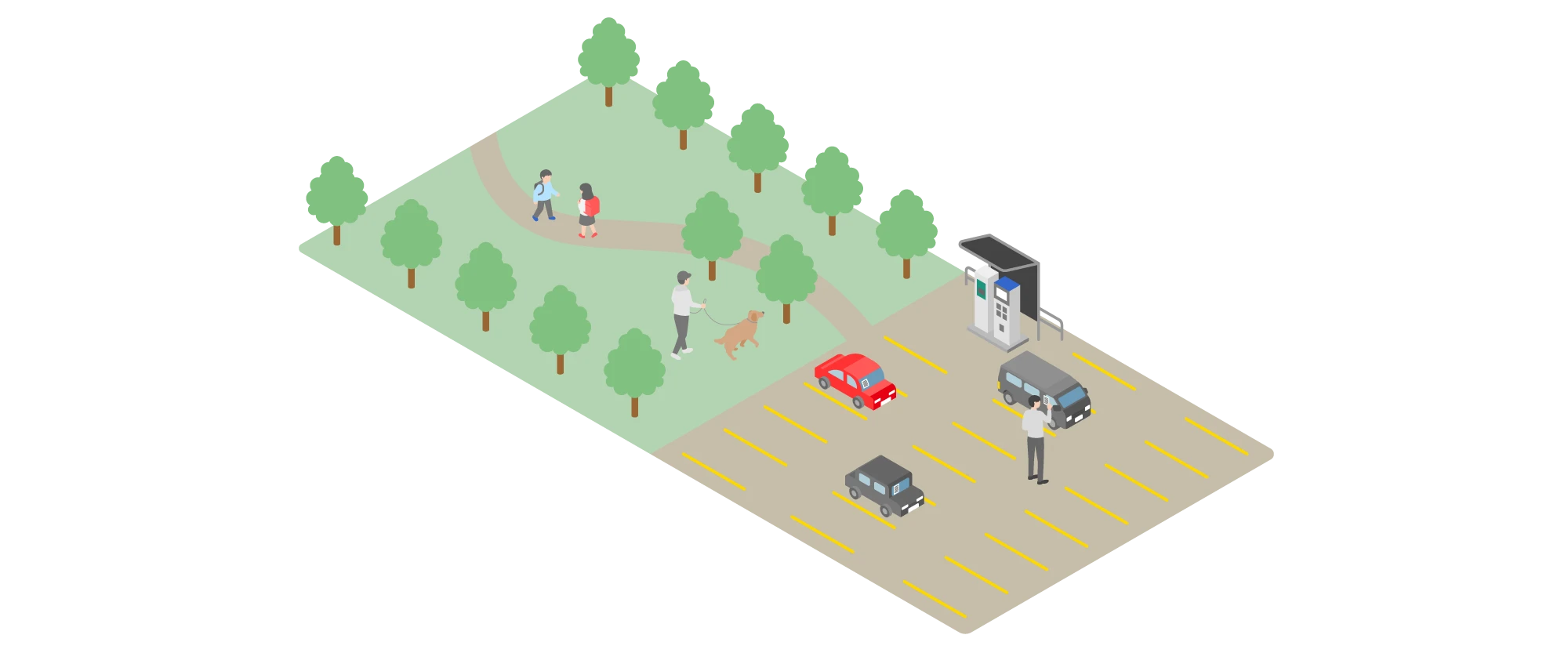 精算機のみの設置作業となり、アスファルト工事が不要なため運用開始までの設置工事や、撤去工事を大幅に削減できる事が特徴です。 -